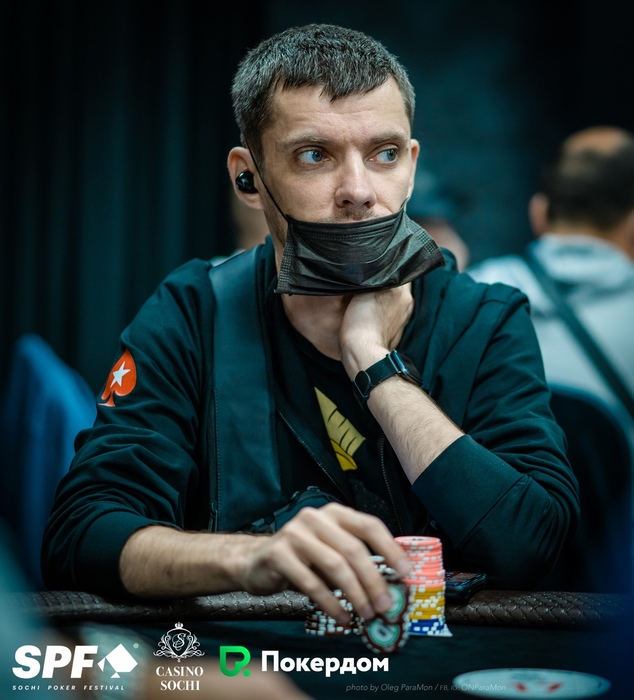 Евгений Некрасов защитил большой блайнд от Александра Балалаева (МР), на флопе заплатил 1,200, а на тёрне донкнул 3,000. Александр переставил до 8,100, получив колл. Ривер прочекали. Некрасов показал флэш и сгрёб фишки в свой бокс.
