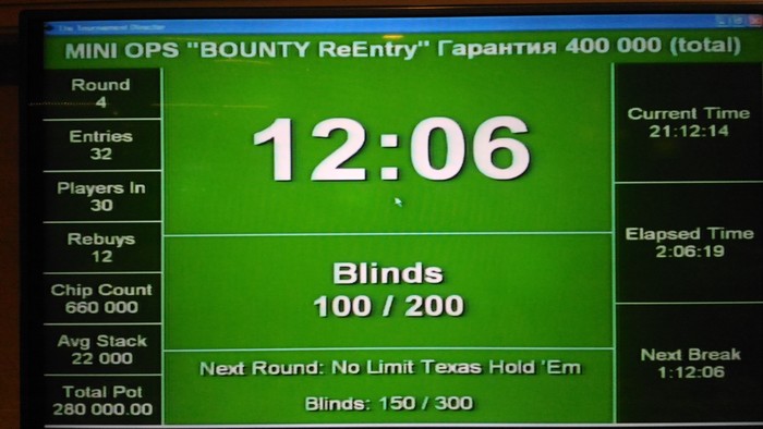 19:00 Турнир Deep Stack Re-Entry по 15 000 руб Гарантия 600 000 руб _ стартовый стэк 30 000 _ стэк на Re-Entry 30 000 _ поздняя регистрация и период Re-Entry 10 уровней _ длительность уровней 30 мин