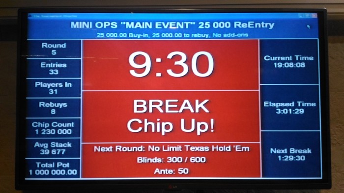 12:00 Turbo Satellite to Main Event в формате Re-Entry по 3 000 руб Гарантия 50 000 (2 билета) _ стартовый стэк 6 000 _ стэк на Re-Entry 8 000 _ поздняя регистрация 6 уровней _ длительность уровней по 6*15/12 мин