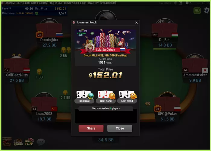 Но вот мтт изредка там поигрывать - почему бы и нет? Благодаря призам с медового месяца прошёл во второй день глобал миллион с призовыми $1кк с неплохим стеком 85бб.