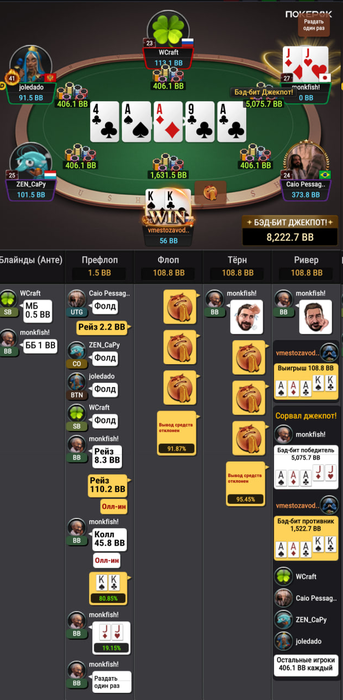 То есть на вас записывается тот рейк, что указан в описании турнира, либо 8% от байина в роялях.