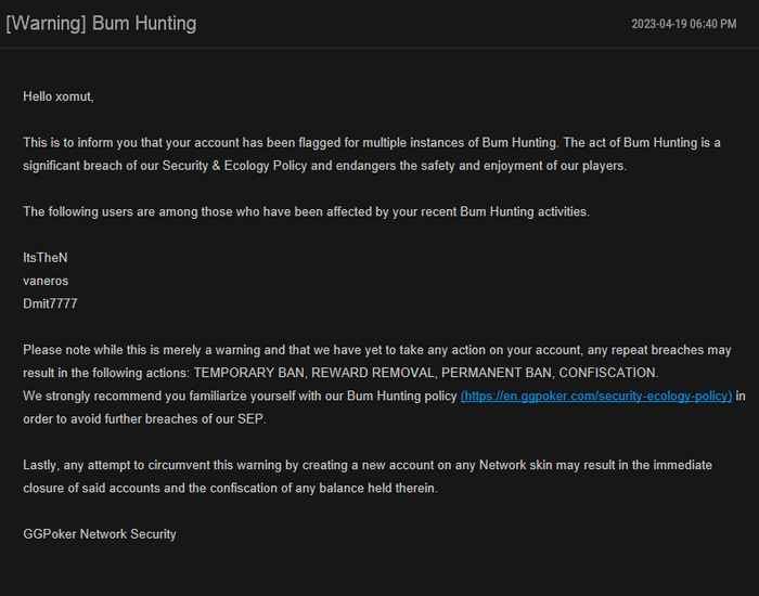 Общий смысл: обвиняюсь в бамхантинге, конкретно трёх ников.