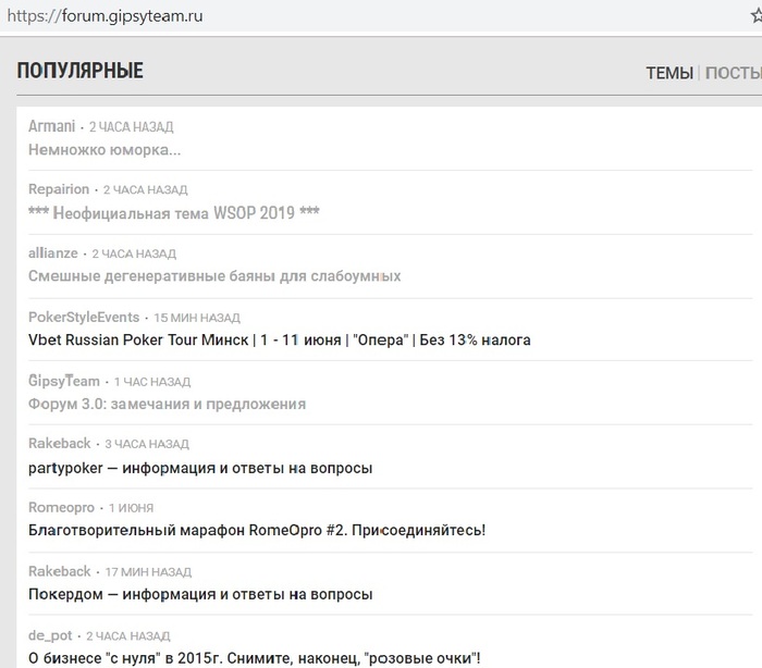 Soul @ 2.6.2019 Топ тем и последние сообщения есть на forum.gipsyteam.ru