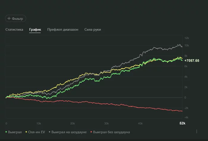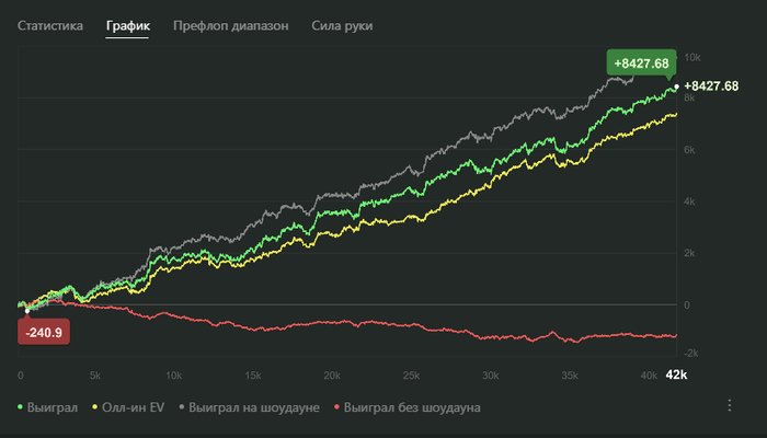 Это подтверждает то, что у нас есть перевес по эквити. Поэтому начинаем ставить терн и ривер, добирая с карманок младше нашей и с редких фд.