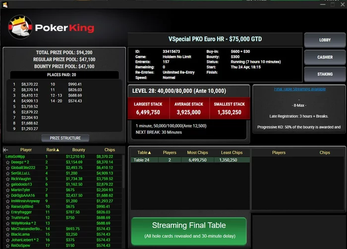 🔹 Турнир: #5 $40,000 NLH Mystery Bounty;