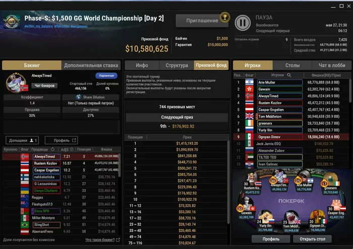 Наш AlexZA3 продолжает бороться на EPT — одной из самых престижных серий в мире, которая сейчас проходит в Монако.