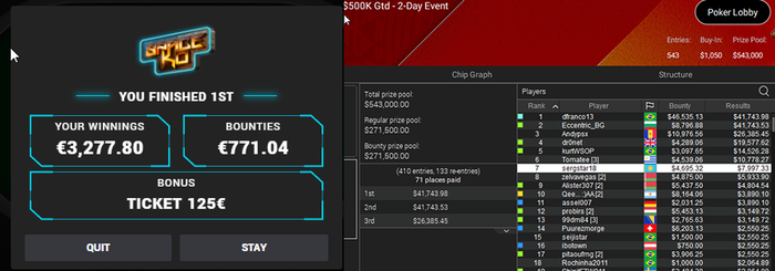 ➡️ Уже сейчас AlexZA3 играет в €3,000 NLHE Mystery Bounty Day 1. Блайнды 200/500, уровень 4.