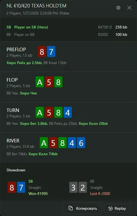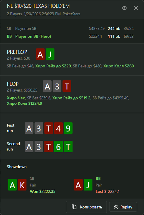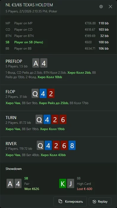 2) тильт АИ. Опп летел мне уже несколько косарей и за соседними столами 3-6 макса проиграл пару крупных банков подряд.