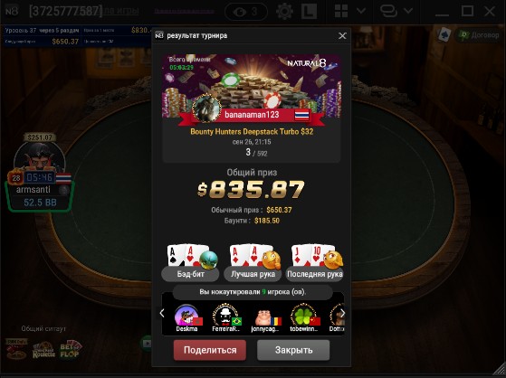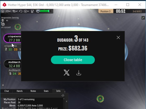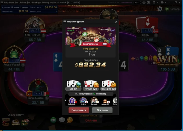 dudaigor @ 05.10.24конце августа остается 16.500 $, играю длинные долгие сессии по 100 + турниров в день