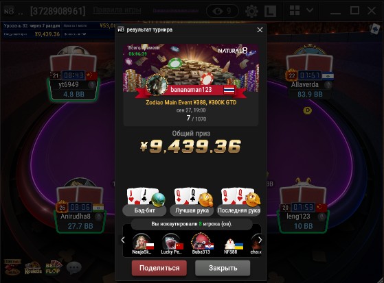 dudaigor @ 05.10.24Июль я практически не играл, август соскучился по покеру и по вечерам начинаю запускать небольшие сессии