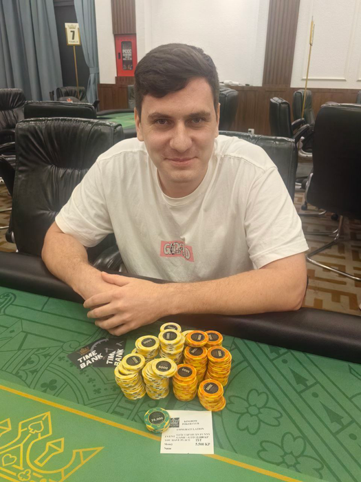 На старте нас было 7, 80% турнира отыграли за одним столом, лишь на последних двух уровнях образовалось два. Я не особо рассчитывал на победу. Посчитал, что попадания в ИТМ будет достаточно. В основном хотелось узнать:
