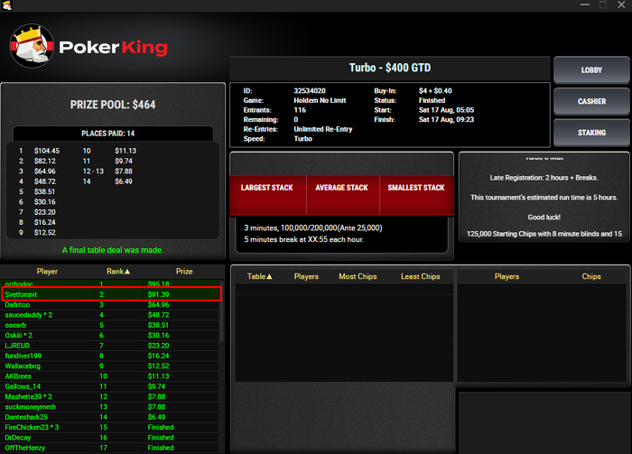 Пару раз на баббле вылетела (видимо, у меня талант), в нескольких прошла глубоко, но не сложилось и там совсем мало насыпали (их не скринила). В итоге три финалки. На впн в ХА поделились, было много столов и парень ничего такой, решила не тратить внимание, а сконцентрироваться на других турнирах.