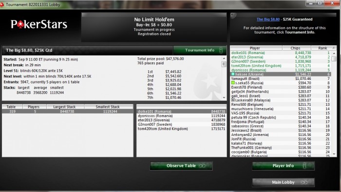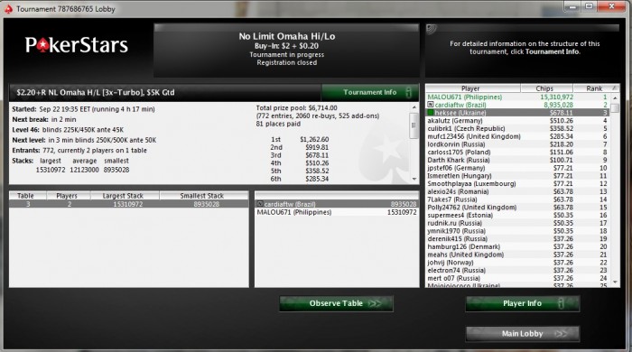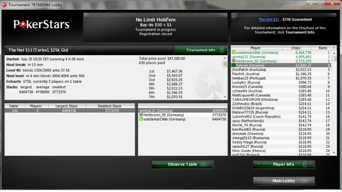 heksee shows HI: two pair, Aces and Sixes; LO: 6,5,4,3,A