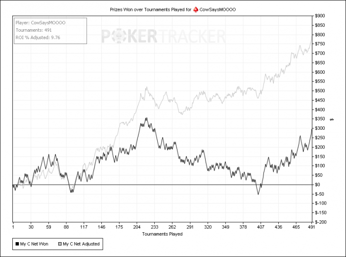 Март получился абсолютно провальным. Все таки пришел к выводу, что 3 стола я не тяну, хотя по ощущениям я все успевая и играю так же как 2. Но есть статистика, говорящая, что в 2 стола я отыграл 1.5к игр с РОИ 12, а в 3 стола 1.4к игр с РОИ 4. Месяц заканчивал уже на 2ух столах, графика не будет ибо пт все евровые стал считать проигранными. +500 как итог в марте, но заработанные за последние дни после отказа от 3его стола, так что не особо унываю, ибо уверенность в игре вернулась. Ну и фппшек наколотил, но я их не отмываю.