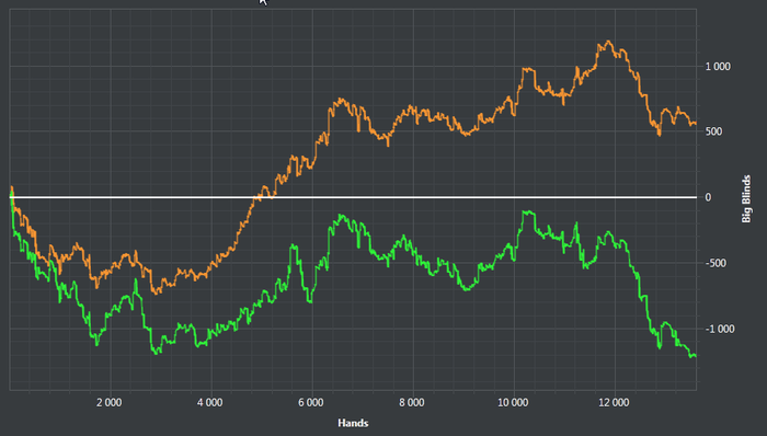 Очень огорчен, что не смог ни разу сесть в кэш. В силу обстоятельств приехал пустой, надеялся что хотя бы 1k$ будет с собой, но не сложилось, а кэш был шикарным.