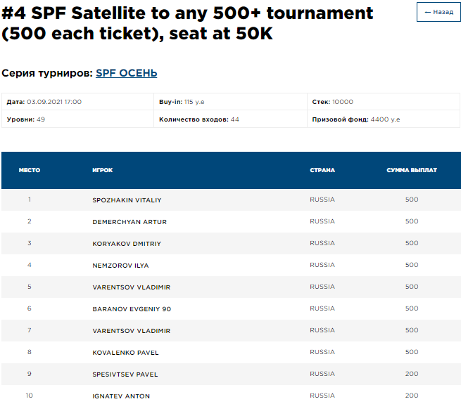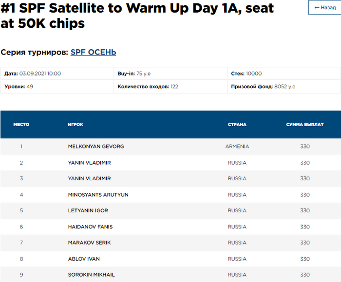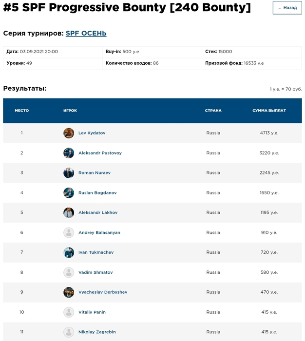 SPC 1A. Участники 31/204. 20-й уровень: 5,000/10,000/10,000.