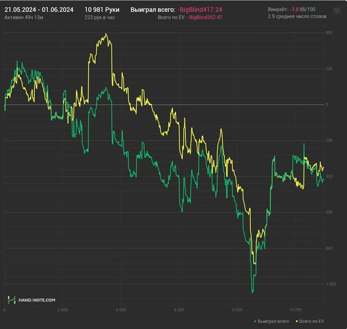 Так вот , каждый день я занимался покером 8часов ( катка + теория ) , не смотря графики и вот , что из этого вышло