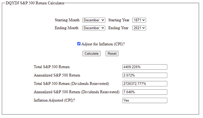 Для справки, за 150 лет сам индекс вырос только в 44 раза, учитывая инфляцию, а за счет дивидендов каждый инвесторский доллар вырос не в 44, а в 27000 раз!
