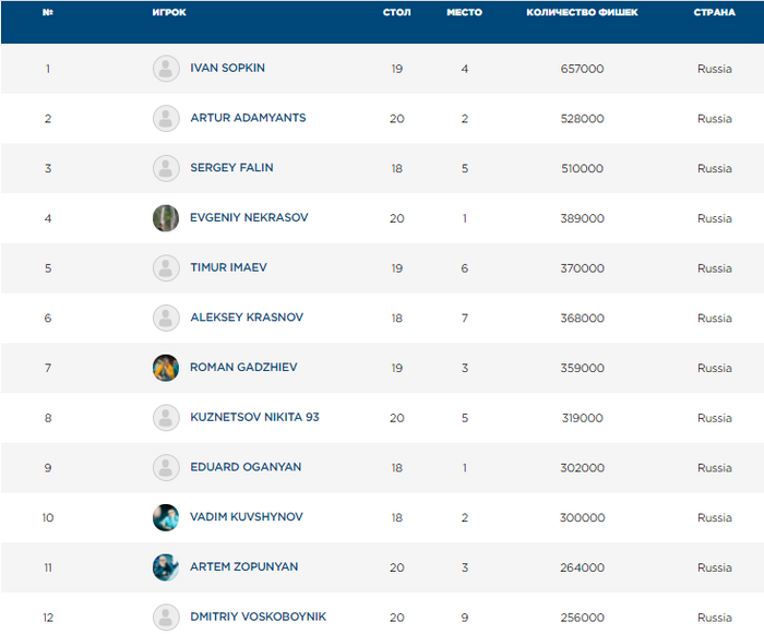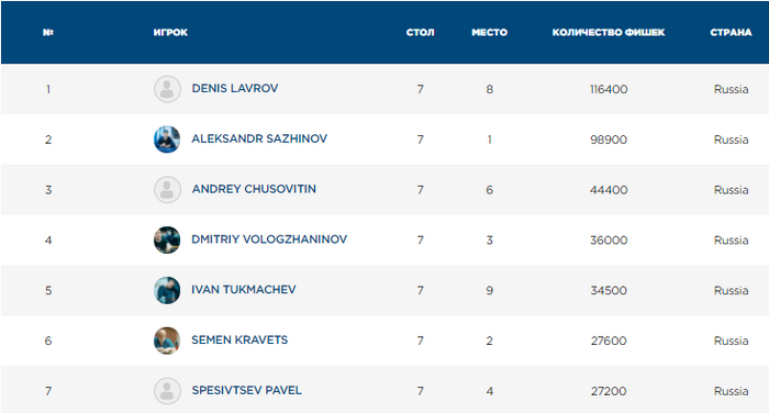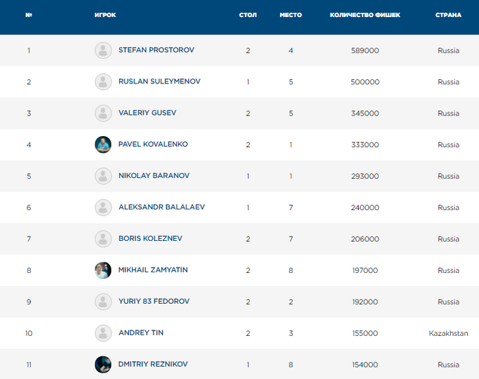 Волова - 190,000 (всего фишек в турнире 450К).