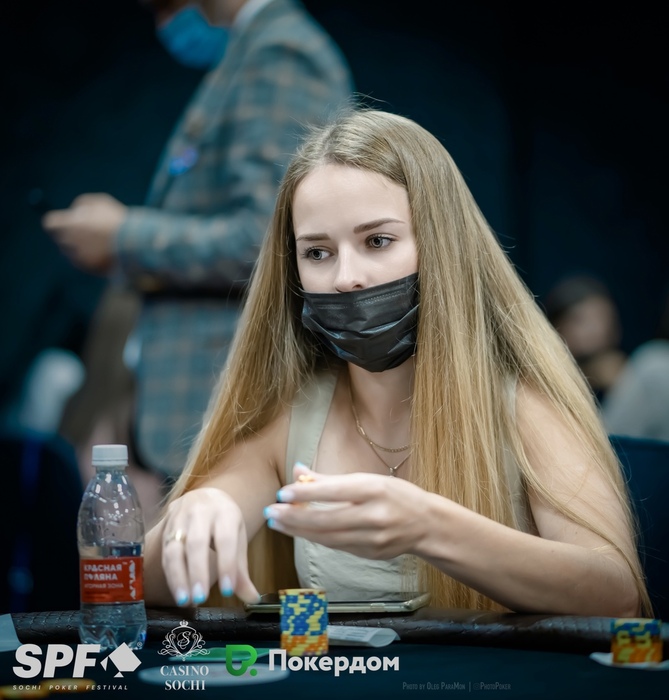 Победительница предыдущего Ladies Event в рамках летнего SPF Анастасия Денисова вылетела на баббле. Волова поставила олл-ин с баттона на , Денисова с самым коротким стеком заколлировала с .