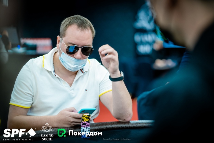Артур Хостиян, в итоге, и оказался баббл-боем. При блайндах 10К/20К он запушил 54К со второй позиции, Николай Баранов на большом блайнде посомневался, но всё-таки доставил.