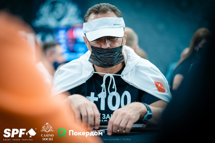 Раскрутиться с 5,5 блайндов Леониду не удалось, и вскоре он покинул турнир.
