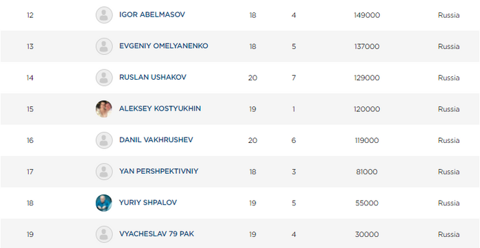 Геннадий Реутов опустился до 550К, удвоив Евгения Косичкина и Дмитрия Нурулина.