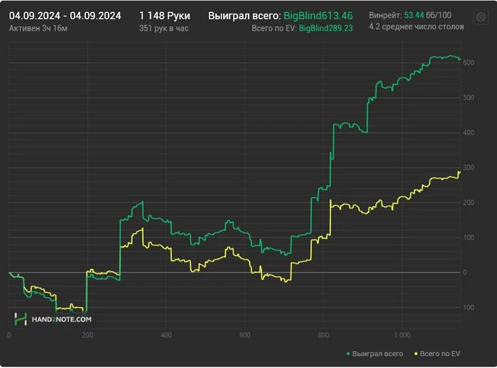 Сегодня я доволен своей игрой , хоть и не свезло в нескольких раздачах , но откровенной лажы не делал и это радует.