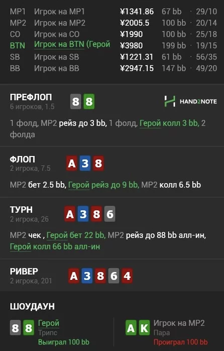 Так вот , сегодня этим бесящим регом стал я , эти раздачи сыграны вс одного и тоже человека с интервалом максимум минут 30 , интересное новое чувство испытал , приятные эмоции )