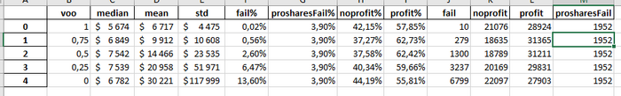 Но предварительно мы проверяем не произошло ли банкротство UPRO. Если выпадает шанс один из 50000, то часть капитала, которая была в UPRO обнуляется. Важный нюанс - при банкротстве UPRO мы еще не банкроты - у нас остается часть в VOO и мы можем дальше перераспределять наши активы по аналогам UPRO (на рынке найдется похожий инструмент UPRO 2).
