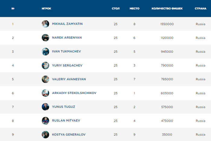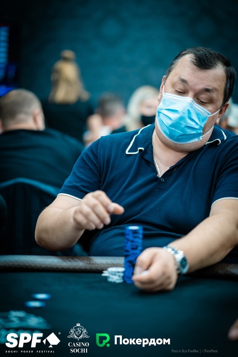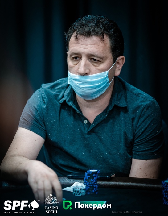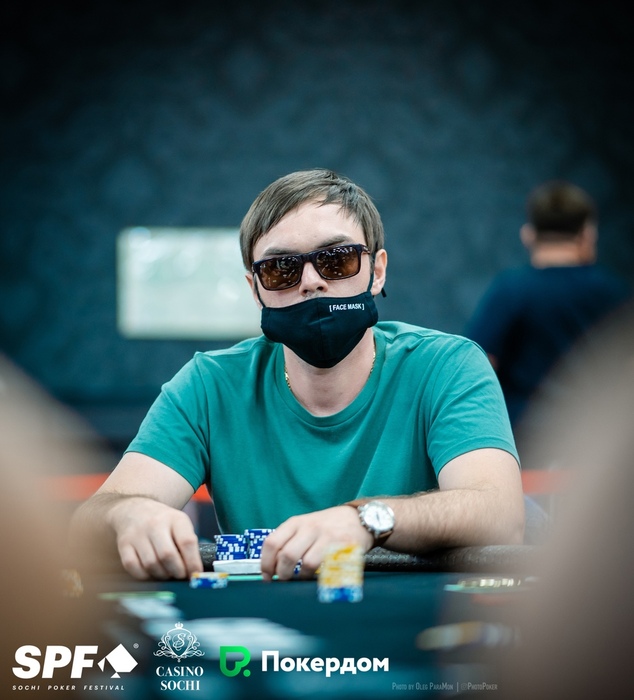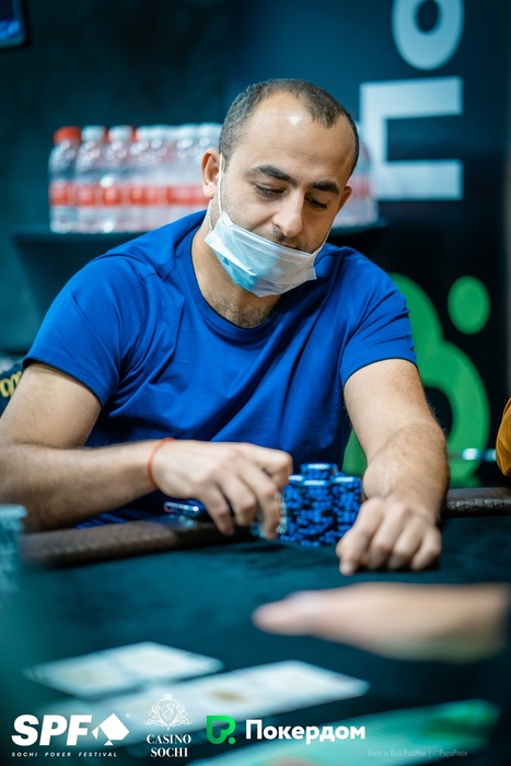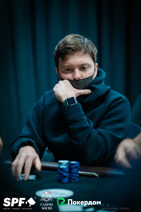 Уже больше миллиона фишек у Ивана Тукмачева. Он начинал сегодняшний день вторым стеком, опускался до 10 блайндов, но затем сумел снова раскрутиться.