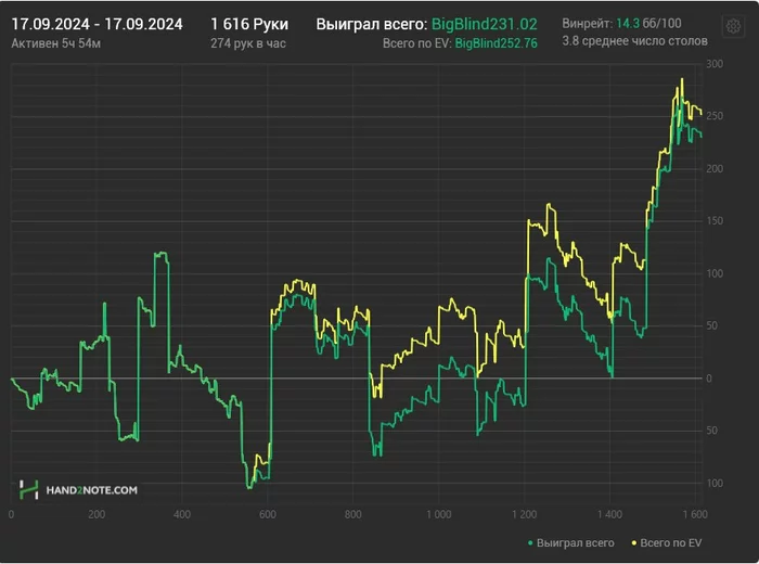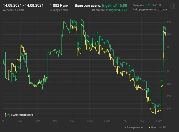 В какой-то момент я почему-то снова погнался за количеством игры , стал играть больше столов , автоматически уровень игры скатился с А гейма в Б-С гейм , просел селект и как следствие начались жесткие качели в игре.