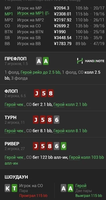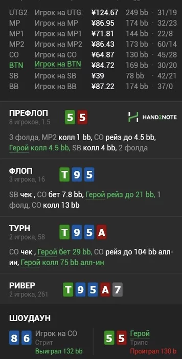 конкретно против этого чела отбил по ридам , Велью он ставил Ривер адекватными сайзингами , а в таких пушах видел блефы.
