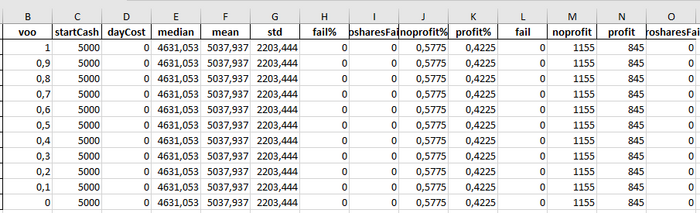 Но мы пошли дальше. Мы хотим сделать симуляцию этого реального инвестора и в этой симуляции перерасчитывать лучшее соотношение как можно чаще. В результате мы хотим узнать, как изменится наше средне-ожидаемое ЕВ и не изменится ли оптимальное стартовое соотношение VOO / UPRO из-за того что мы применяем более продвинутую стратегию.