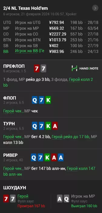 Ты че то в кучу все написал , начнем с того что рейк высокий везде , да возможно он на х покере выше , но это нужно бить хорошим селектом , чем я и пытаюсь заниматься. Если для тебя 63/54 который активно играет , барелит, выставляется , он потом 200+ бб по топ паре отдал регу не является випом , тогда я не знаю чел какие тебе нужны випы , ты таких устанешь искать . О какой позиции ты говоришь я сижу на бб и колю префлоп 77 , с АД сквиз префлоп.