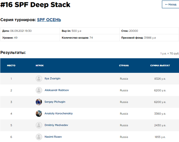 Иван Тукмачев (31,5 ББ) - победитель Sochi Poker Cup (SPF Grand Final-2019), Warm Up (SPF Весна-2021). Месяц назад занял третье место в Opener на серии WPTDS.