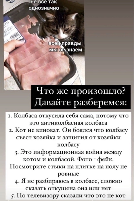 6. Колбаса намеревалась сьесть кота, кот просто опередил ее буквально на несколько часов.