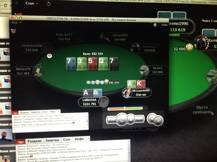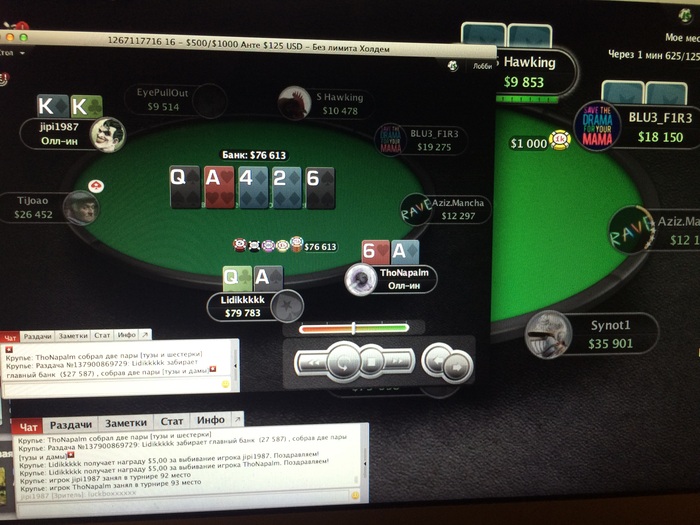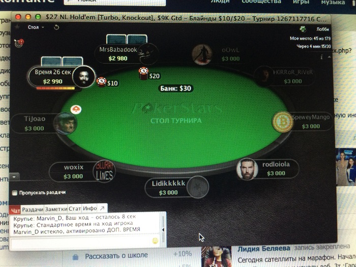 На тот момент стек 30к стал, но после перерыва в 4 раздачи меня разобрали, стек снова начальный.