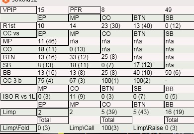 Barachiel @ 12.8.2015 Если у человека на фулл ринге общие показатели 14/7, значит в утг будет примерно 4/4 основные рейзы и колы приходятся на катофф-баттон и блайнды