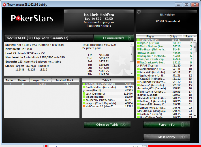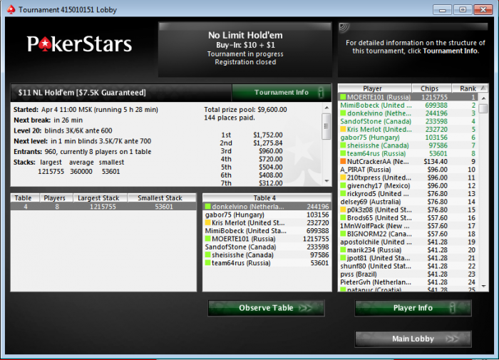 Вот такие игроки на 25 лимите.Покер жив!No Limit Holdem Tournament
