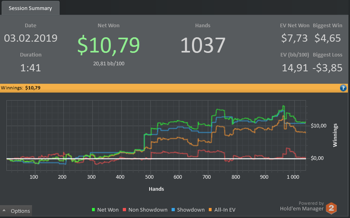 letovpower, Не надо быть умнее холдем менеджера он считает сам только кармашки,можешь чекнуть, твои 5к это выброс диспы, будешь продолжать играть по 500рук стрик не закончится.