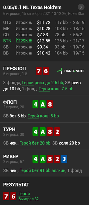 Mizamax @ 17.10.21+на таком терне опп может себе легко позволить чекпушить АК\AQ и мы будем сжигать свое эквити.