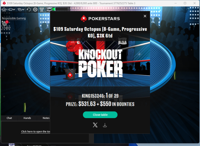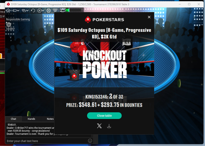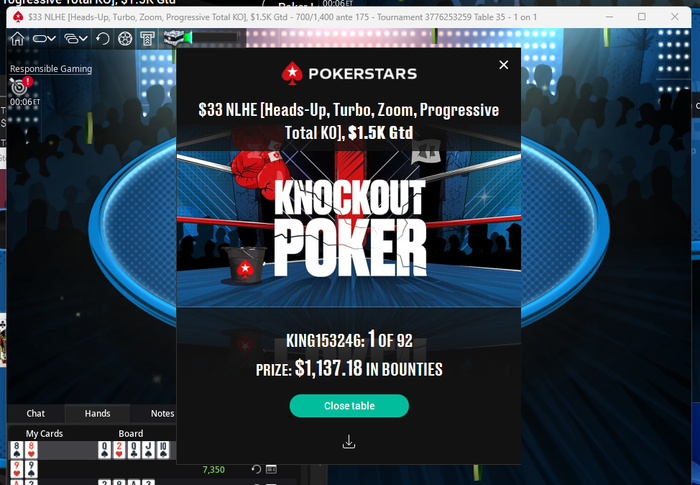 Из покерных новостей, наконец покорилась самая дорогая из регулярных хедзапов 215 дуэль(играю я ее впрочем весьма нерегулярно, стараюсь чтоб было хотя б меньше 10 столов на фоне)))