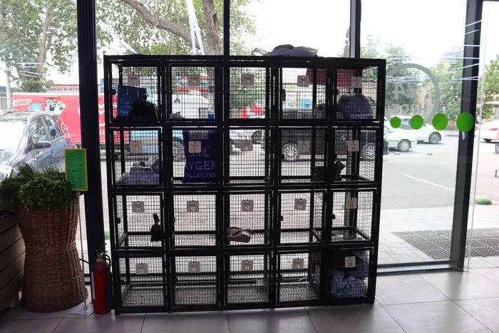 Прозрачные камеры хранения в супермаркете, тоже весьма необычная деталь.