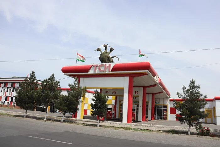Ну и традиционные для Таджикистана портреты президента и гос символы при въезде в любой населенный пункт(а иногда и просто в рандомных местах трассы, как с грустной улыбкой шутят местные, даж в пустыне скорее найдешь портрет Рахмона чем воду).