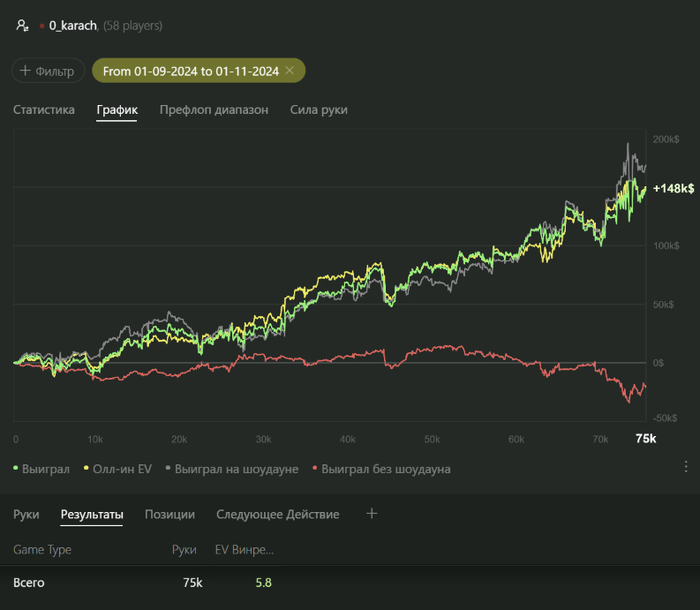 Из интересного в первой половине октября съездил на недельный отдых от того, что тело очень устало и не был удовлетворен уровнем концентрации на 1к. Сликшом много хс экшна. Во второй половине месяца я изменил приоритеты и сидел в лобби по 10ч в день, играя хс. Евшка от игры просто крышесносная, хотя и количество рабочих часов по сути вдвое увеличилось. К этому решению меня сподвигло интервью омашиста с главной, который в год на 1кк+ бамхантом выносит с таким же подходом.