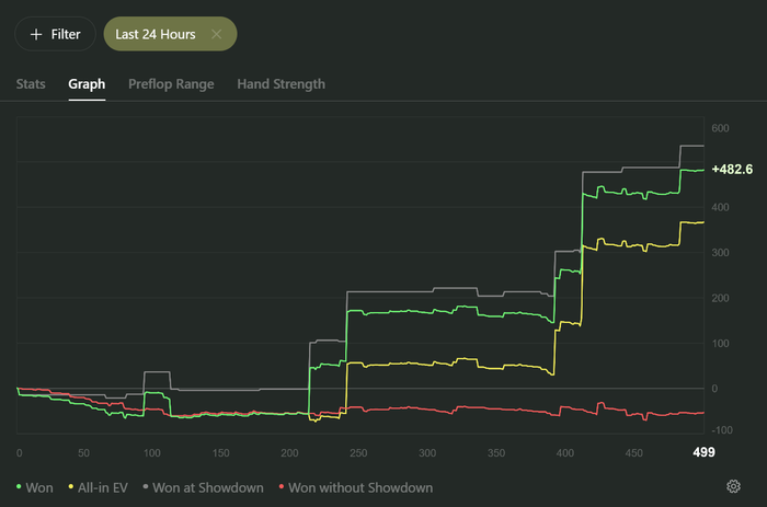 Как промежуточный итог, могу сказать, что за 9 месяцев (с апреля) сделал 36к, и еще недобрал 10+ (до вычета доли фонда). Графиков не будет, так как половина загрузки не трекается, либо трекается криво. Может к годовому отчету сам график в эксельке прилеплю по месяцам) Сумма не то что бы сильно впечатляющая, но так как это был первый год, когда я пощупал нл500, а потом еще и нл1к, то считаю норм, потому что для меня первое время игра на этих лимитах сопровождалась огромным кол-вом стресса, так как я к этому очень долго шел + рассказы, что с нл500 и выше сидят исключительно одни акулы и тд (вранье), а еще я мнительный сам по себе)) в общем, первые месяцы играл не лучшую свою игру на этих лимитах, сейчас нл500 уже комфортно катается вполне. Надеюсь увеличить профит в 2026ом. Ах, да, еще и ребенок родился и туда ушло очень много времени в ушерб катке, пока не нанял няню ближе к октябрю, но это уже совсем другая история