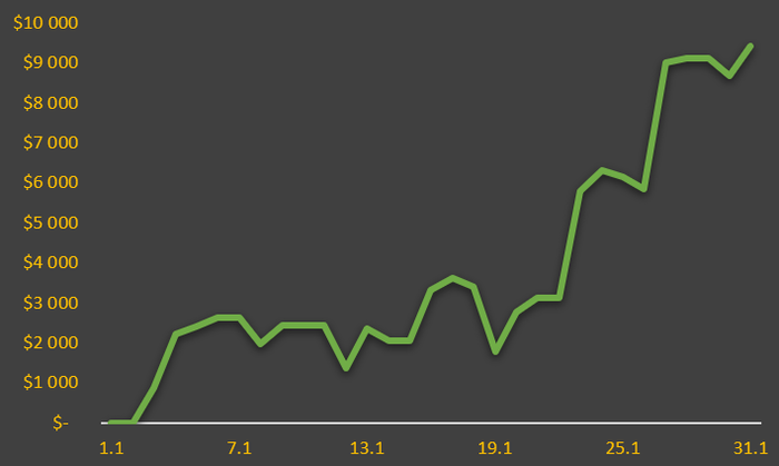 Графики сам себе клепаю в эксельке, так как многое не трекается, делаю просто по профиту по дням.