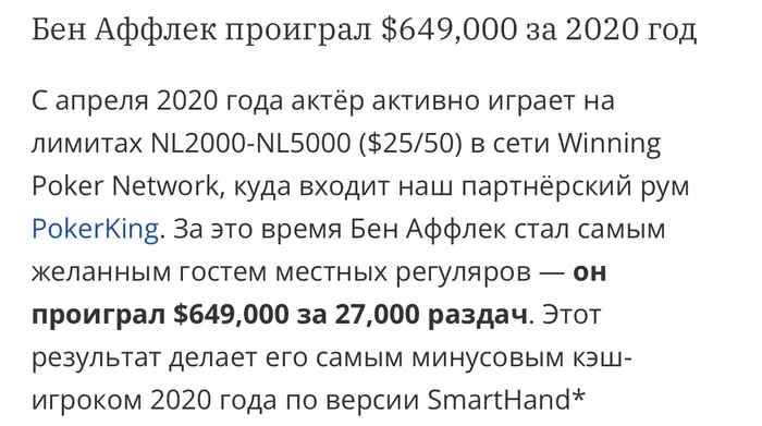 Более того, сыграл в 3-max 5-bet push на 100 bb с A4s BB vs BTN посмотрел на AK неизвестного.