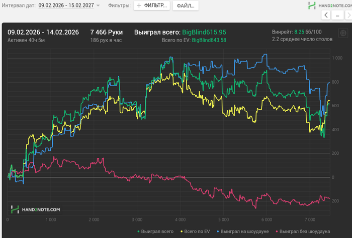 Всем привет! Как и планировал, эту неделю почти не катал. Поработал с теорий пару часов и отыграл 1.3К рук.
